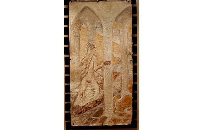 “unenägu ii” 2009, käsitsi pressitud pabermass, segatehnika